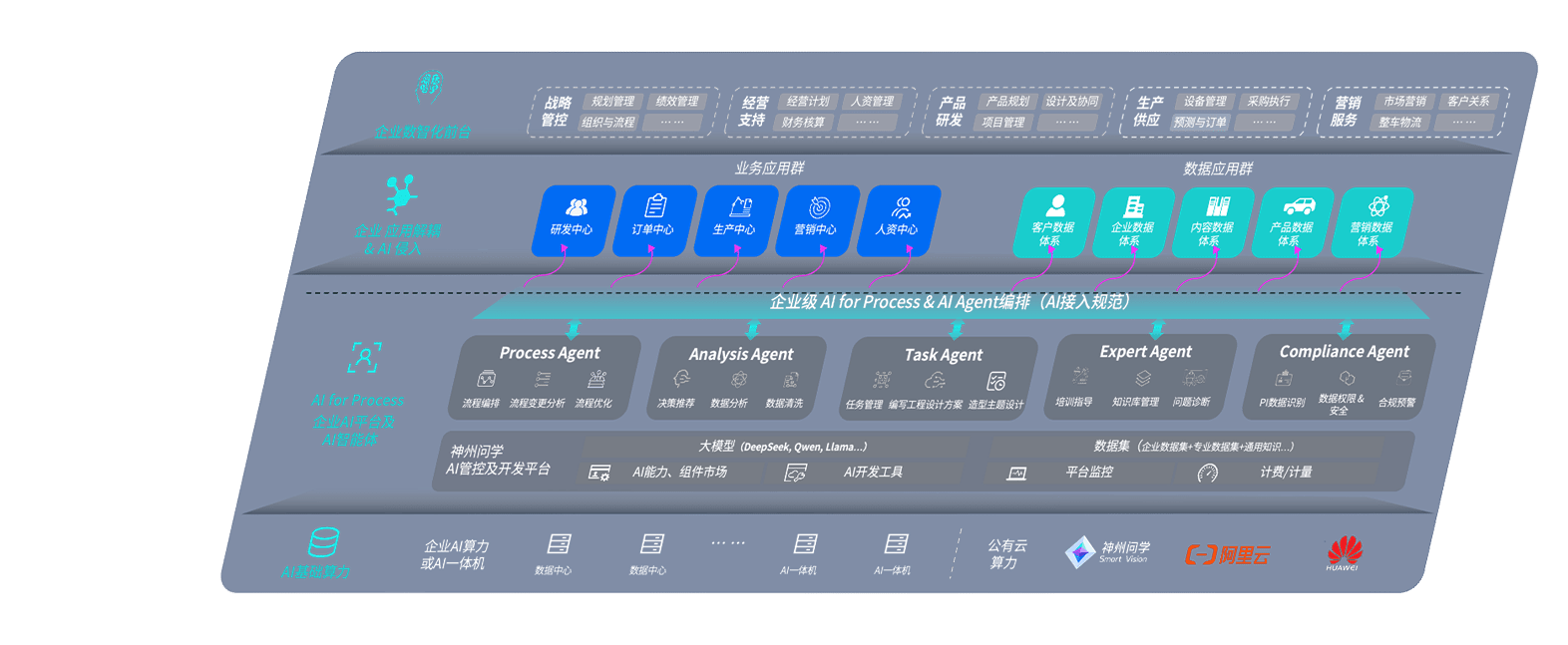 天辰平台问学智车解决方案是一套基于AI技术的汽车行业智能化系统,,,覆盖从底层算力到顶层AI应用的全栈方案。。。。方案由算力层、、、模型层和应用层组成:算力层,,,,方案支持多种一体机配置,,,,具备云端灵活部署、、、、多云适配以及动态优化计算资源的能力;模型层,,,,天辰平台问学平台版提供了企业级AI应用一站式构建与管理平台,,,支持基于后训练强化技术的汽车企业专属模型的训练、、、评测和运营;应用层,,,天辰平台问学DeepSeek版提供包括超级员工、、、、智能招采、、、智能营销、、智能客服、、、、AI for BI等一系列解决方案,,可助力汽车行业实现数字化转型,,,让管理更智能、、、、响应更敏捷。。