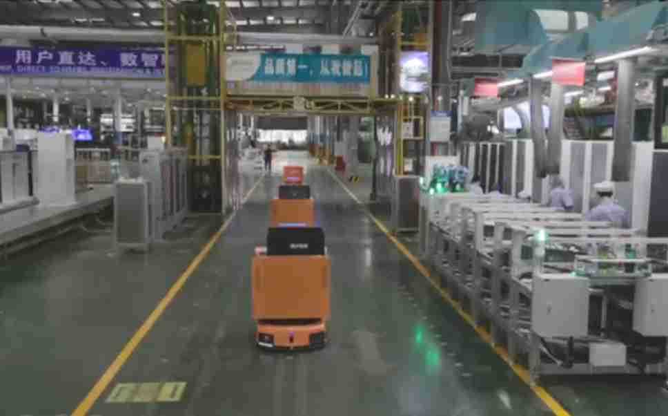 为车载冰箱物流配送打造的智能解决方案,,,包含产中物流通过潜伏举升AMR搬运至线边,,产后成品物流智能仓储,,流程包含产中物流智能齐套入库,,,线边安灯叫料AMR智能配送至线边,,,成品入库、、出库,,,,通过无人堆高车机器人,,,,智能仓储管理替代人工作业管理,,,实现更高存储、、、、更高效率、、、、更具柔性化的解决方案。。。